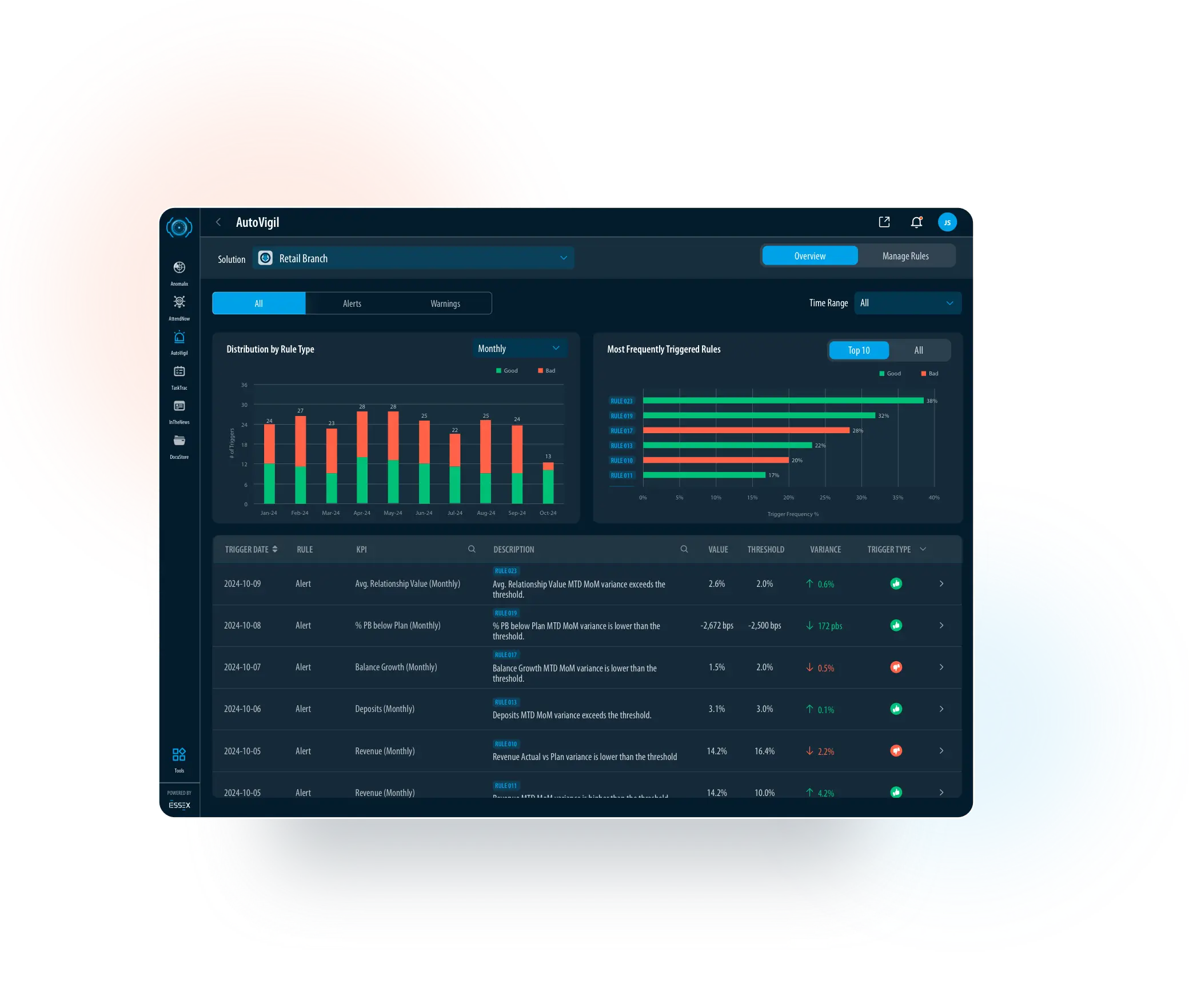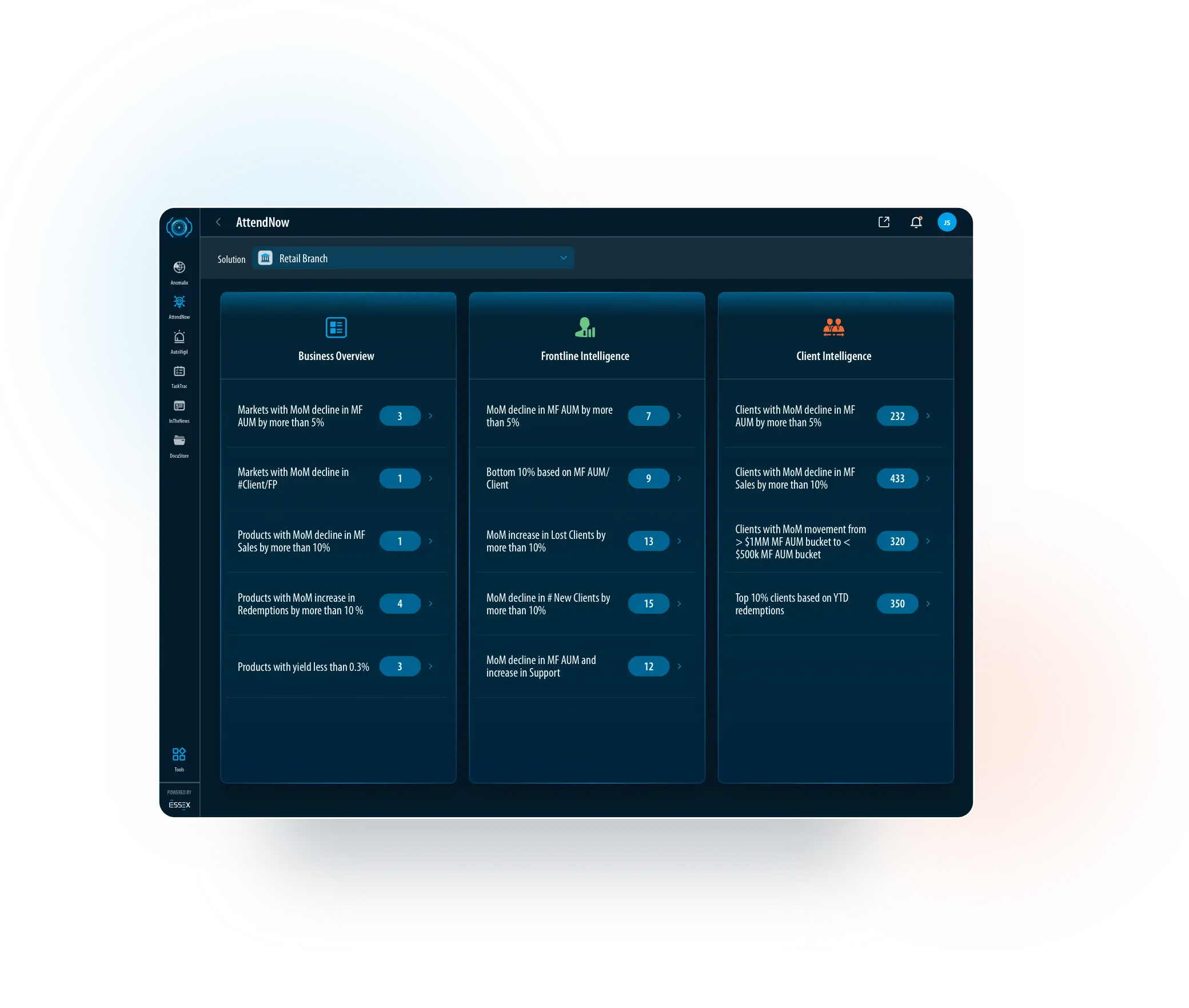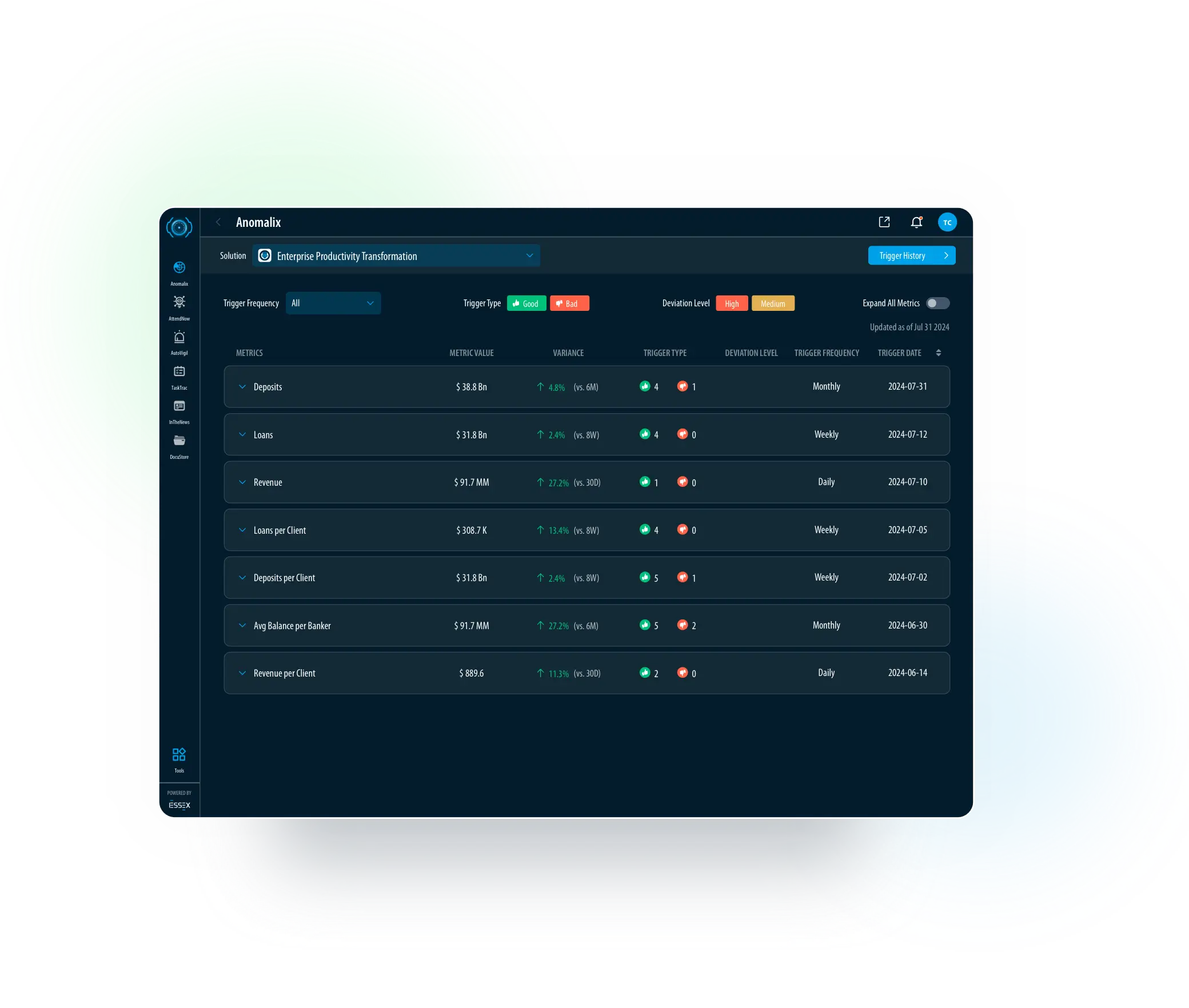 Anomalix Enter Anomalix   east AutoVigil Enter AutoVigil   east AttendNow Enter AttendNow   east arrow_back_ios Anomalix Anomalix AttendNow AutoVigil InTheNews DocuStore Tools Powered by Solution Trigger History   east TaskTrac NostraD Ask EARS arrow_back_ios AttendNow Anomalix AttendNow AutoVigil InTheNews DocuStore Tools Powered by Solution TaskTrac NostraD Ask EARS arrow_back_ios AutoVigil Anomalix AttendNow AutoVigil InTheNews DocuStore Tools Powered by Solution Overview TaskTrac Manage Rules NostraD Ask EARS arrow_back_ios Ask EARS Anomalix AttendNow AutoVigil InTheNews DocuStore Tools Powered by Solution TaskTrac NostraD Ask EARS arrow_back_ios TaskTrac Anomalix AttendNow AutoVigil InTheNews DocuStore Tools Powered by TaskTrac NostraD Ask EARS arrow_back_ios NostraD Anomalix AttendNow AutoVigil InTheNews DocuStore Tools Powered by TaskTrac NostraD Ask EARS arrow_back_ios InTheNews Anomalix AttendNow AutoVigil InTheNews DocuStore Tools Powered by TaskTrac NostraD Ask EARS News My News Bookmarks arrow_back_ios DocuStore Anomalix AttendNow AutoVigil InTheNews DocuStore Tools Powered by TaskTrac NostraD Ask EARS Library Favorites Unassigned arrow_back_ios Executive Summary Executive Summary Branch Review Operation Planning Tools Powered by Employee Productivity Customer Experience arrow_back_ios Branch Review Executive Summary Branch Review Operation Planning Tools Powered by Employee Productivity Customer Experience lock_open   Unlock Now arrow_back_ios Operations Planning Executive Summary Branch Review Tools Powered by Employee Productivity Customer Experience lock_open   Unlock Now Operation Planning arrow_back_ios Employee Productivity Executive Summary Branch Review Tools Powered by Employee Productivity Customer Experience lock_open   Unlock Now Operation Planning arrow_back_ios Customer Experience Executive Summary Branch Review Operation Planning Tools Powered by Employee Productivity lock_open   Unlock Now Customer Experience Anomalix Enter Anomalix   east AutoVigil Enter AutoVigil   east AttendNow Enter AttendNow   east