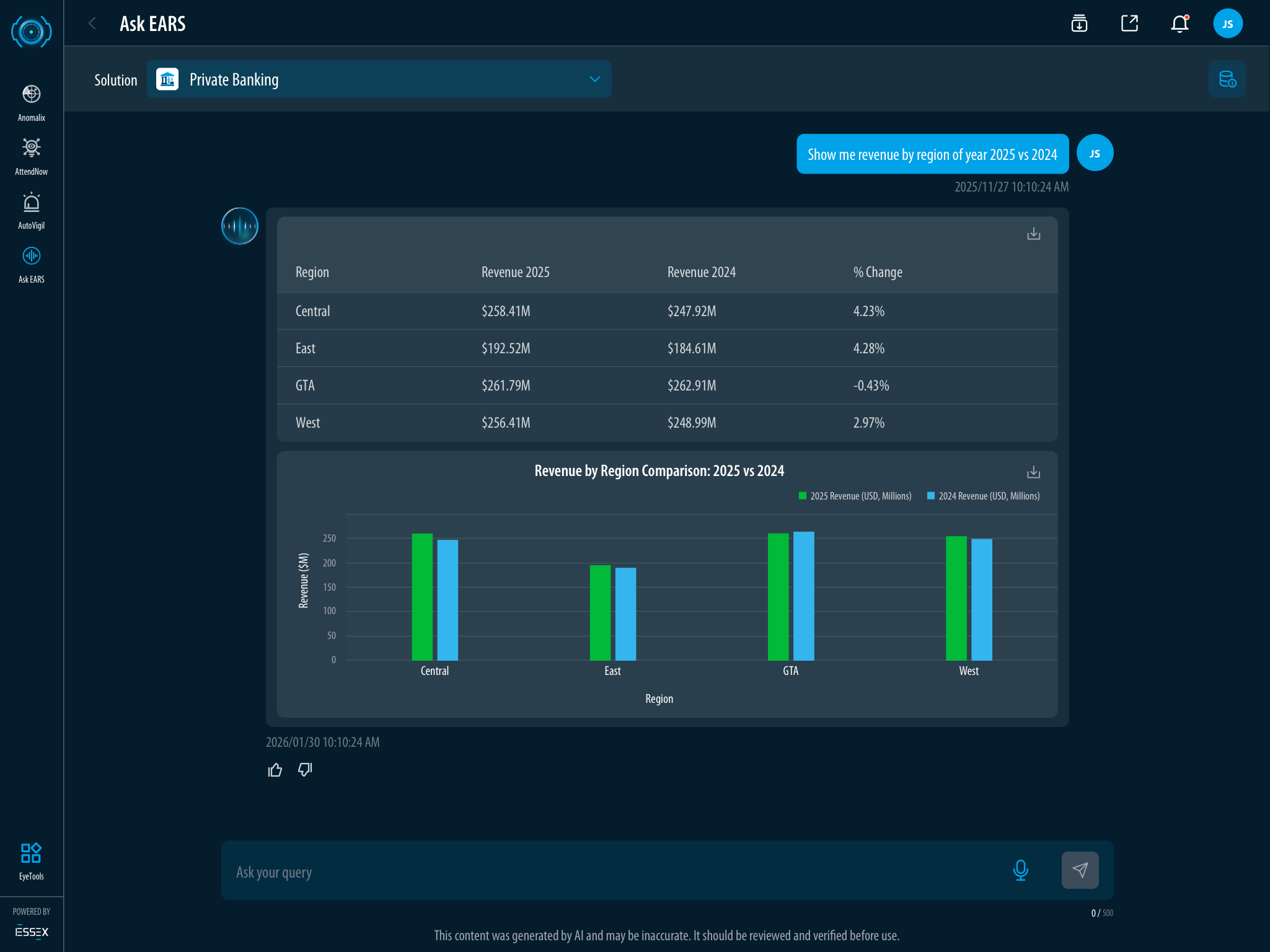 Ask EARS™ parses the comparison automatically AI Understands the Request 03 / 05