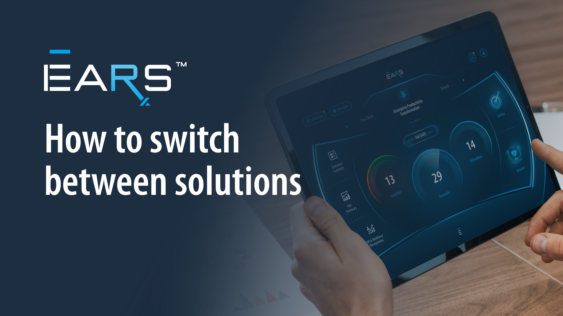 Step-by-step instructions to help you log in and access the solutions you are entitled to. Executive AI Cockpit Start Tutorial How to Log In Tap the EARS™ icon on Your iPad Open the EARS™ App 01 / 04