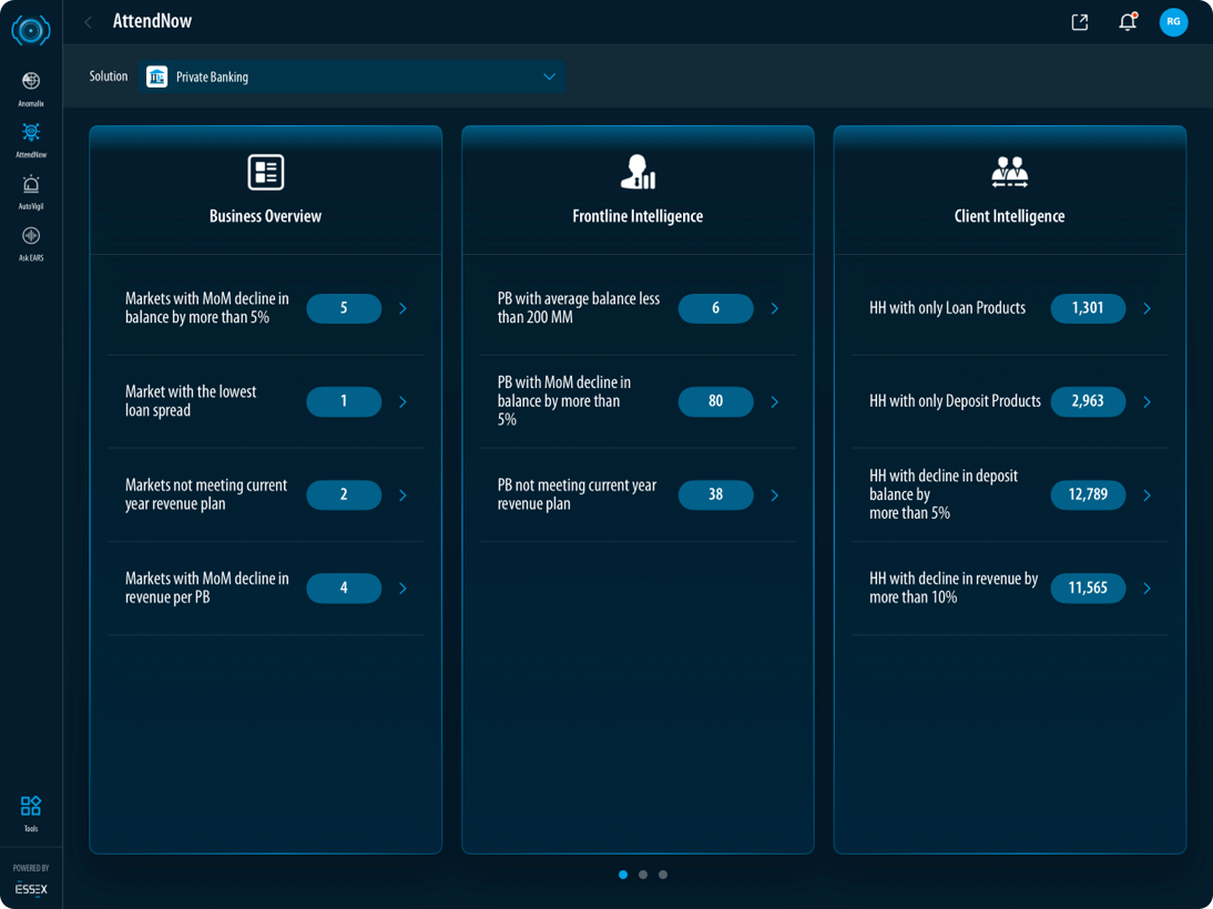 Shows a list of operational items that need immediate attention, available as a widget on the EARS landing page. AttendNow™ Start Tutorial View Your Action Items Access your action items Next   Open AttendNow 01 / 03